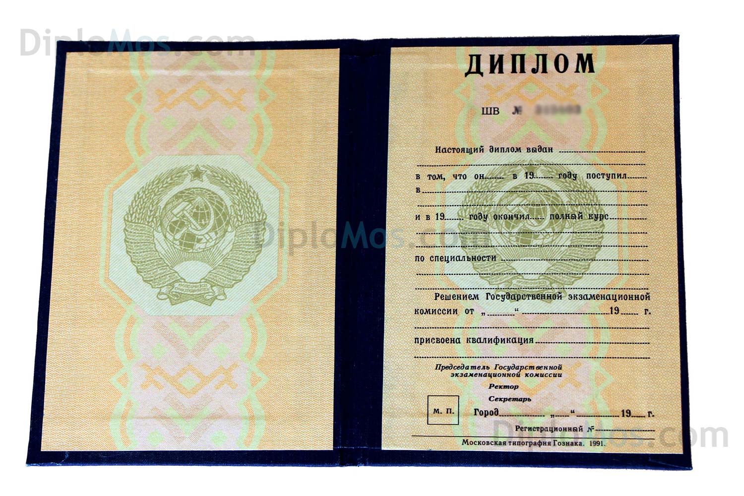 Ищите, где купить диплом СССР о высшем образовании с окончанием вуза в 1970-х, 1980-х годах вплоть до 1996 года? Перелагаем Вам свои услуги. Диплом будет выполнен на оригинальном бланке Гознак с гербом СССР на развороте, заполнен с учетом всех образовательных стандартов и требований к заполнению дипломов старого образца: данные вносятся от руки чернильным пером (точно также заполнялись корочки в ВУЗах СССР), а приложение — на печатной машинке или от руки (зависит от конкретного учебного заведения и Ваших пожеланий). Ваш документ будет выглядеть так, как если бы Вы получили его в ВУЗе в то время!